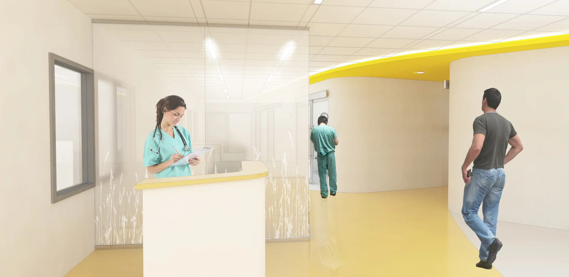 - Immediate greeter station that quickly moves patient into the care initiation process, which will eliminate queue times and congestion in the lobby.